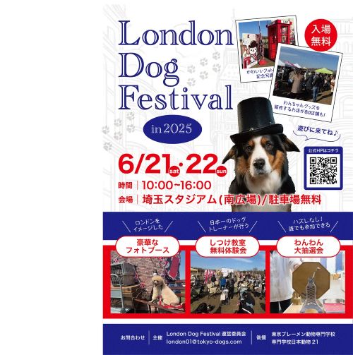 London Dog Festival 2025年6月13日 最終更新日時 : 2025年6月13日 DOMUN-スタッフ 2025年6月22日(日)に埼玉アリーナ南広場にて開催されるLondon Dog Festivalに出店致します。開催は21日、22日の2日間ですが、弊社は22日のみの出店となります。 是非お越しください。